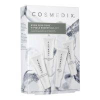 CosMedix Even Skin Tone 4-Piece Essential Kit contains everything you need to help reduce hyperpigmentation for a more even skin tone. Contains 4 generous sized travel sizes.